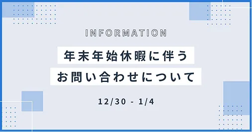年末年始のサービス提供スケジュールについてのお知らせです。詳細はお問い合わせください。